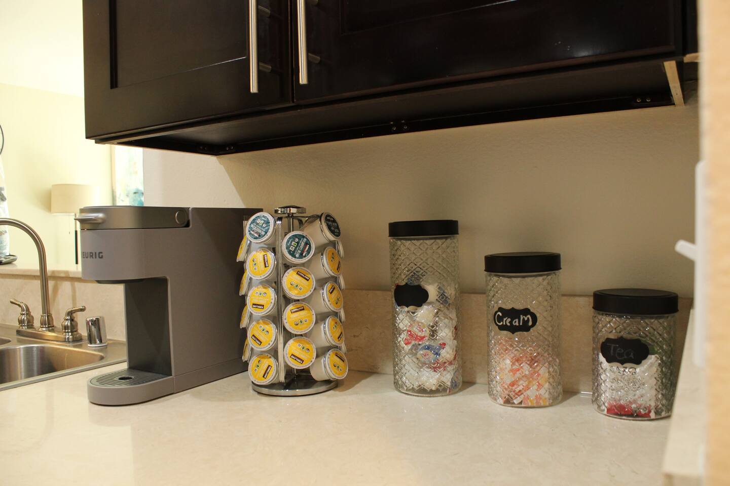 The whole apartment is accessible to our guests, along with the complimentary coffee and tea, other than one storage closet that will remain locked. There is one assigned parking spot for the unit, but there is also onsite visitor parking.