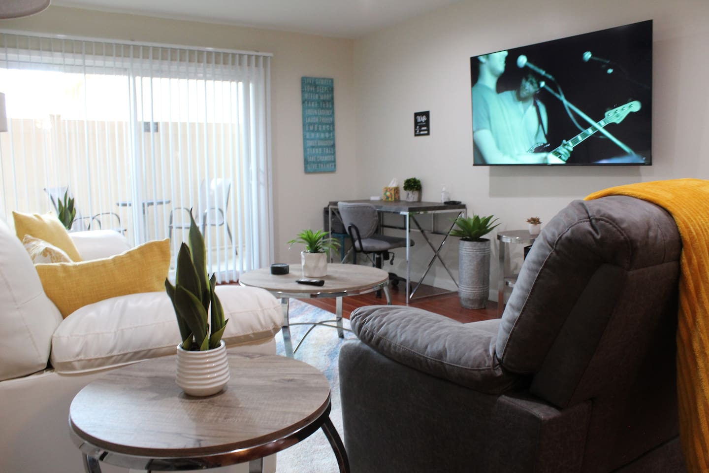 Our apartment has been beautifully decorated with your comfort in mind. We have every amenity you need to make this your true home away from home. The ground floor patio is an excellent way to enjoy a meal in the fresh outdoor air. Have a lot of work to do while traveling? Take a seat at the executive desk and enjoy the provided network printer to put together your documents. The wireless internet is both fast and reliable. Other excellent features you will enjoy are: - Free onsite covered parking for one vehicle - Fully equipped and stocked kitchen with Keurig coffee & Tazo Tea - Fabric steamer (No more suitcase wrinkles!) - Central A/C + Heat ~~for families Pack n Play, high chair, stroller